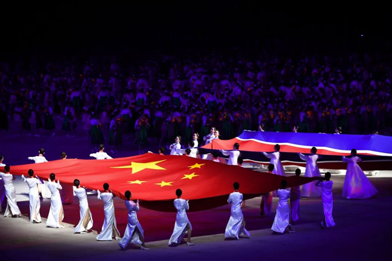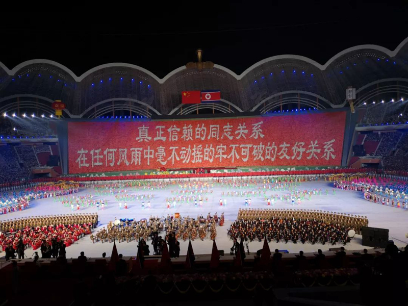 這臺(tái)演出為習(xí)近平此訪專門精心創(chuàng)作,數(shù)萬(wàn)名朝鮮演員參加表演,朝鮮三大樂(lè)團(tuán)首次同臺(tái)獻(xiàn)藝,整場(chǎng)演出氣勢(shì)恢宏、震撼感人。