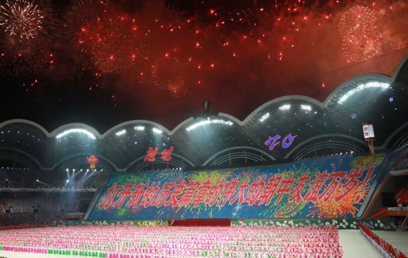 2018年9月,朝鮮為慶祝建國(guó)70周年打造了名為《輝煌的祖國(guó)》的大型團(tuán)體操和藝術(shù)演出,反映朝鮮建國(guó)以來(lái)在各領(lǐng)域取得的成就。