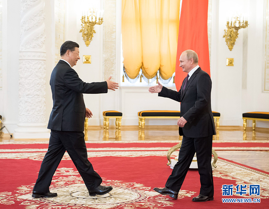 6月5日,克里姆林宮2層喬治大廳燈火通明。習近平主席和俄羅斯總統(tǒng)普京從數十米長的紅毯兩端相向走來。