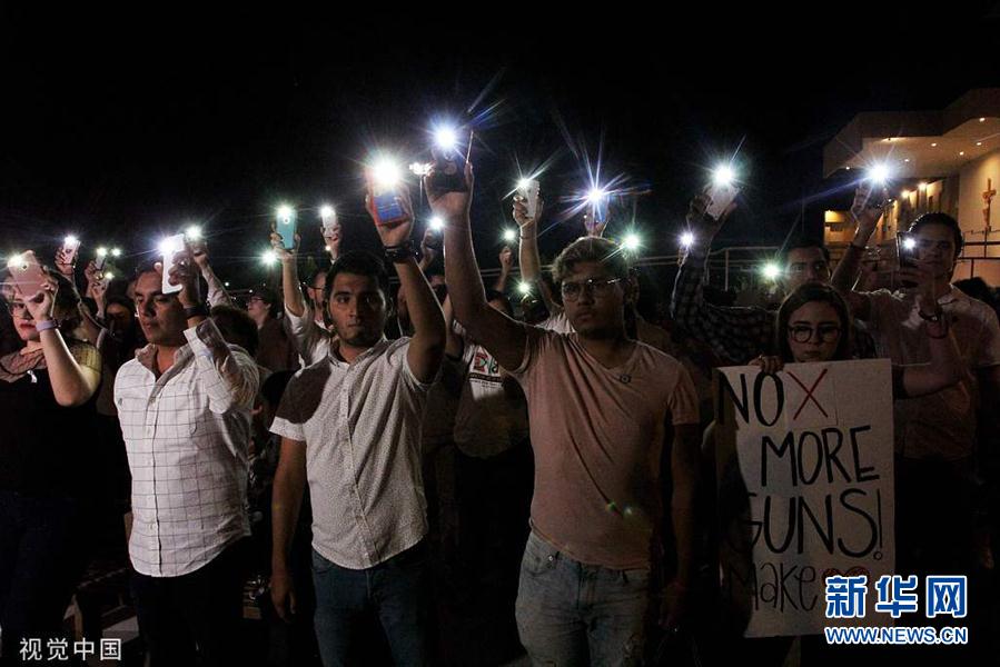 當?shù)貢r間8月3日,美國得克薩斯州埃爾帕索,當?shù)孛癖妳⒓邮匾够顒樱磕钣鲭y者。當?shù)匾患页邪l(fā)生嚴重槍擊案。據(jù)美國有線電視新聞網(CNN)最新消息,埃爾帕索市警察局長格雷格·艾倫稱,槍擊案已造成20人死亡,26人受傷,一名來自得克薩斯州艾倫市的21歲白人男子目前已被拘捕。(圖片來源:視覺中國)