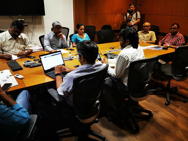《印度教徒報》各個版面負責人于晚間召開碰頭會,商量確定內(nèi)容和版面設計。新華社記者趙博攝