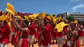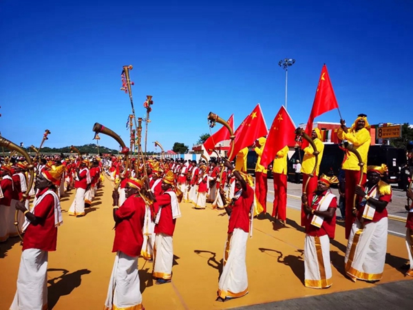 民眾們載歌載舞,有人跳起婆羅多舞,有人踩高蹺、劃旱船,盛情歡迎習(xí)主席的到來。