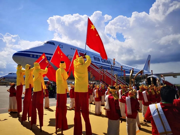 11日下午2時10分許,習(xí)主席乘坐的專機抵達金奈國際機場。