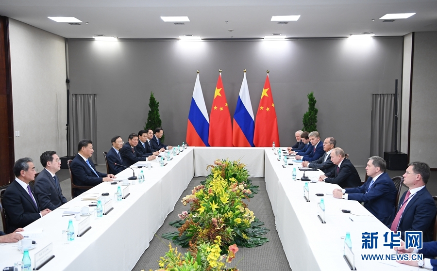 當?shù)貢r間11月13日,國家主席習近平在巴西利亞會見俄羅斯總統(tǒng)普京。新華社記者 張領 攝