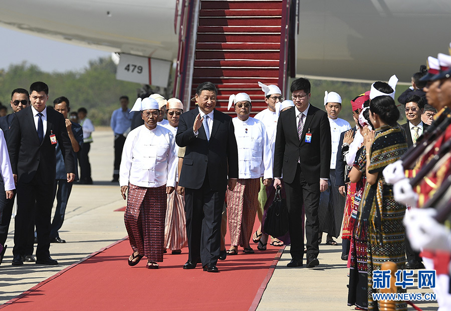 當(dāng)?shù)貢r(shí)間1月17日下午,國家主席習(xí)近平乘專機(jī)抵達(dá)內(nèi)比都國際機(jī)場(chǎng),開始對(duì)緬甸聯(lián)邦共和國進(jìn)行國事訪問。習(xí)近平抵達(dá)時(shí),緬甸第一副總統(tǒng)敏瑞率多名內(nèi)閣部長在舷梯旁熱情迎接。 新華社記者 饒愛民 攝