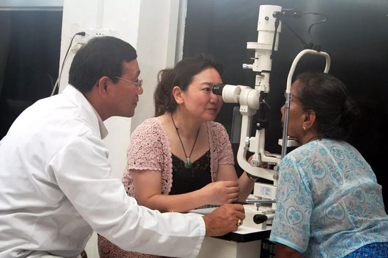 ▲2011年5月31日至6月7日,中國赴緬國際復明醫(yī)療隊在緬甸仰光開展“光明行”活動,為248名緬甸白內(nèi)障患者免費進行手術。圖為中緬兩國醫(yī)生為已接受手術的緬甸白內(nèi)障患者復查。