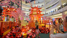開(kāi)幕式后,中日兩國(guó)書法家揮毫潑墨,在紅紙上書寫了一個(gè)個(gè)喜氣洋洋的“福”字,并舉起剛剛寫好的“?!弊职菽?,現(xiàn)場(chǎng)頓時(shí)變成一片歡樂(lè)的“福”的海洋。參加活動(dòng)的人們爭(zhēng)相向書法家求“福”字,拿到書法家墨寶的人興高采烈。有的人還與書法家合影留念,然后小心翼翼地雙手托著“?!弊譂M意而去。