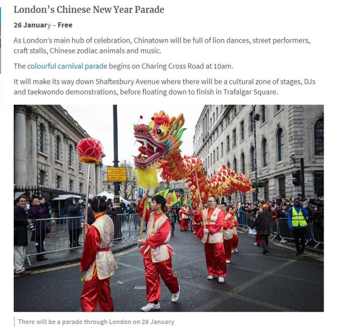 英國(guó)倫敦將于1月26日舉行舞龍舞獅的街頭表演。來源:英國(guó)metro都市地鐵報(bào)紙網(wǎng)站報(bào)道截圖