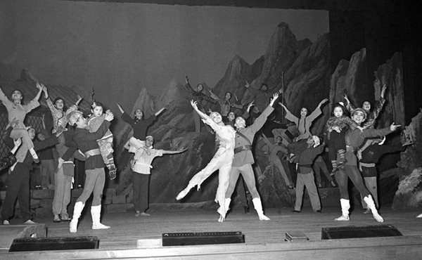 1973年2月10日,日本松山芭蕾舞團(tuán)的演員和中國舞劇團(tuán)的演員,在北京天橋劇場同臺演出《紅色娘子軍》。 新華社記者王景英攝
