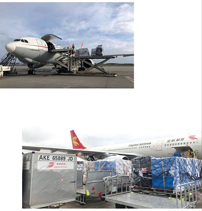 特別值得一提的是海航集團的譚向東副董事長、高建副總裁,為了協助我們把捐贈物資盡快運回國內,高度重視,靠前指揮,第一時間給予全面而具體的支持。旗下的首都航空公司市場部副總顧凌毅、貨運中心高級經理田國偉協調陳肖藝、倪福元、李小戈、首航西安基地總監(jiān)周瑞喜、海航速運境外管理部副總經理池夢瑩以及郭宇萍等一批業(yè)務骨干加班加點,克服了時間緊張,物資量大,境外時差等諸多困難,創(chuàng)造了許多個“首航第一次”。蟠龍國際集團、中遠海運航空公司則為這場“空中接力”提供了高端快捷的航空物流平臺。而在第四批物資回運過程中,更是得到了溫州市防疫指揮部的鼎力相助,幫助我們把西班牙巴塞羅那收集點上的捐贈物資,從布魯塞爾轉道回國。