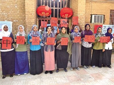 2月25日,在蘇丹喀土穆大學(xué),數(shù)十名蘇丹喀土穆大學(xué)中文系的學(xué)生參加中國文化展覽活動(dòng),一起為中國抗擊疫情打氣。新華社發(fā)