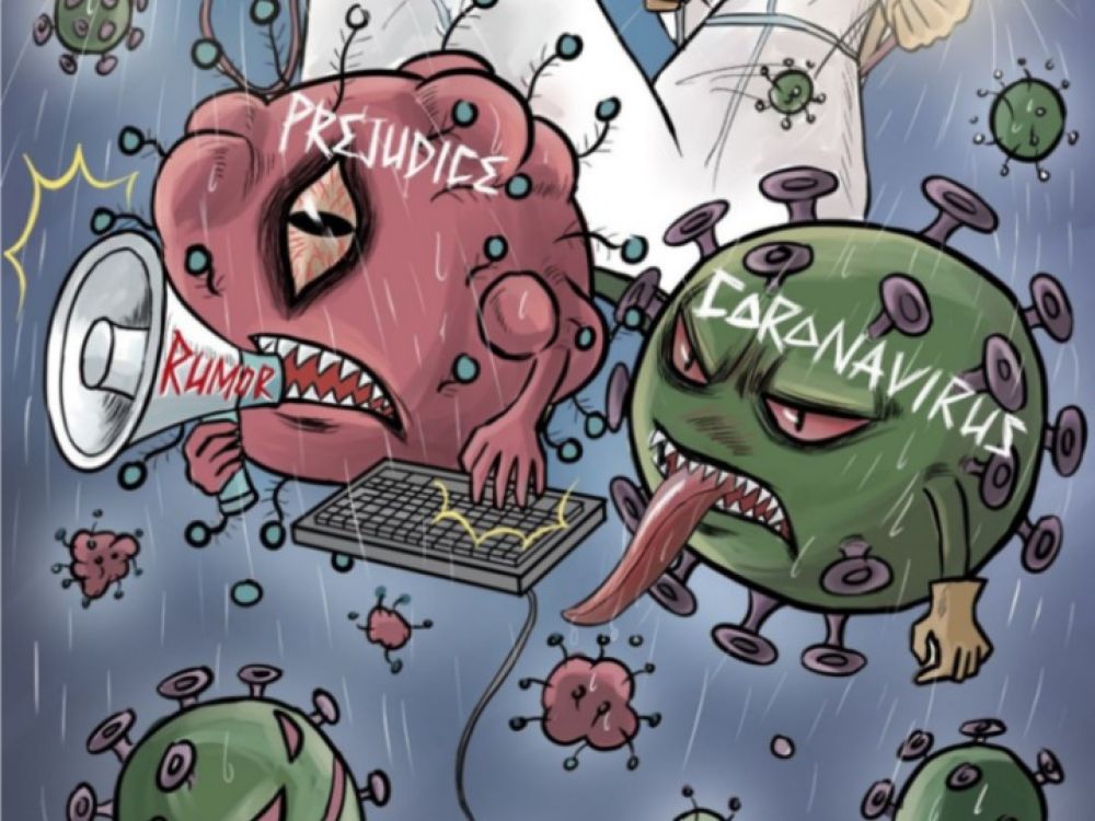 新華社2月29日在海外社交媒體平臺(tái)上播發(fā)以反對(duì)偏見(jiàn)和謠言為主題的“戰(zhàn)疫”漫畫(huà)。