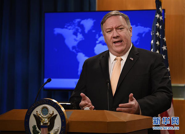 資料圖片:美國(guó)國(guó)務(wù)卿蓬佩奧。新華社記者 劉杰 攝