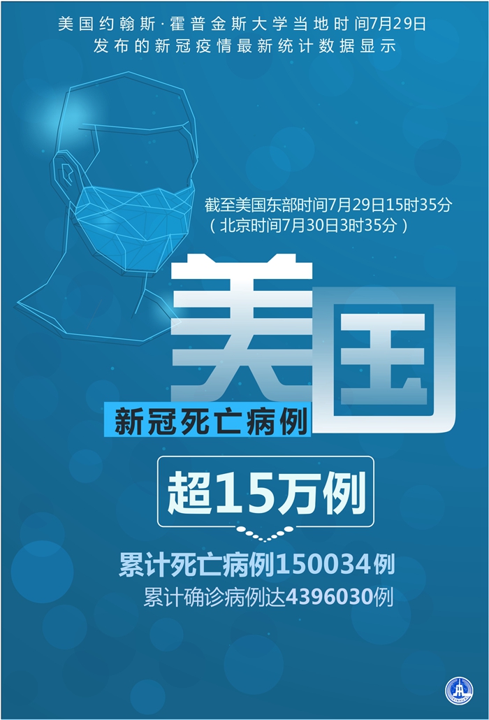 新華社紐約7月29日電 美國約翰斯·霍普金斯大學(xué)29日發(fā)布的新冠疫情最新統(tǒng)計數(shù)據(jù)顯示,美國累計死亡病例超過15萬例。