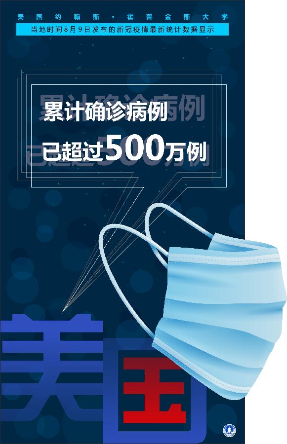 新華社紐約8月9日電? 美國(guó)約翰斯·霍普金斯大學(xué)9日發(fā)布的新冠疫情最新統(tǒng)計(jì)數(shù)據(jù)顯示,美國(guó)累計(jì)確診病例已超過(guò)500萬(wàn)例。