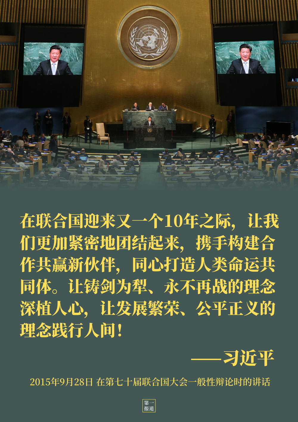 “第一報(bào)道”選取其中3個(gè)鏡頭,帶您重溫5年前習(xí)主席的“聯(lián)合國時(shí)間”——