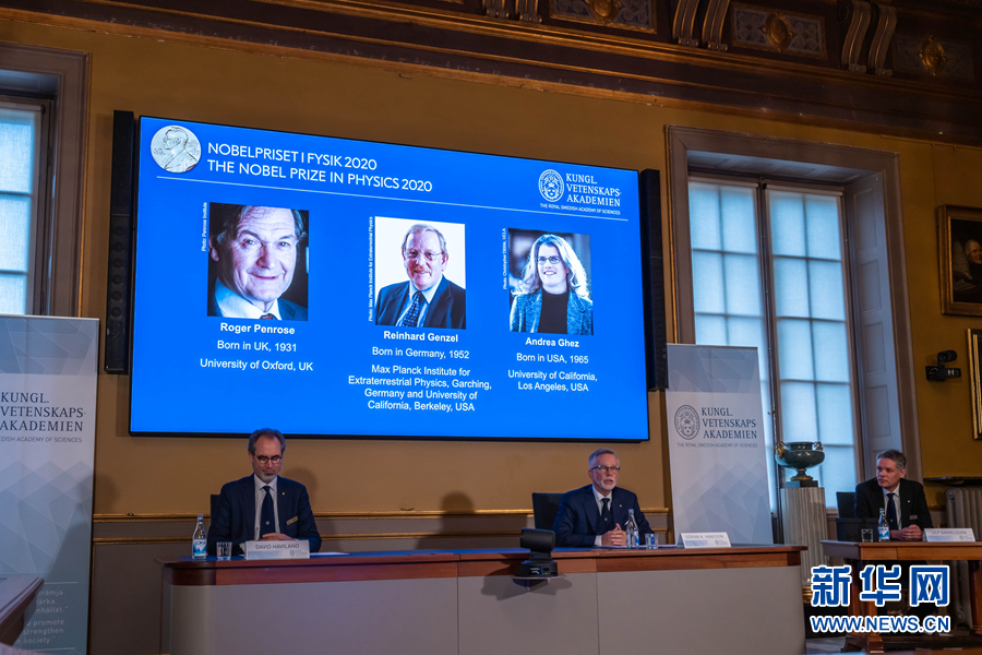 10月6日,在瑞典斯德哥爾摩,瑞典皇家科學(xué)院公布2020年諾貝爾物理學(xué)獎獲得者。 新華社發(fā)(魏學(xué)超攝)