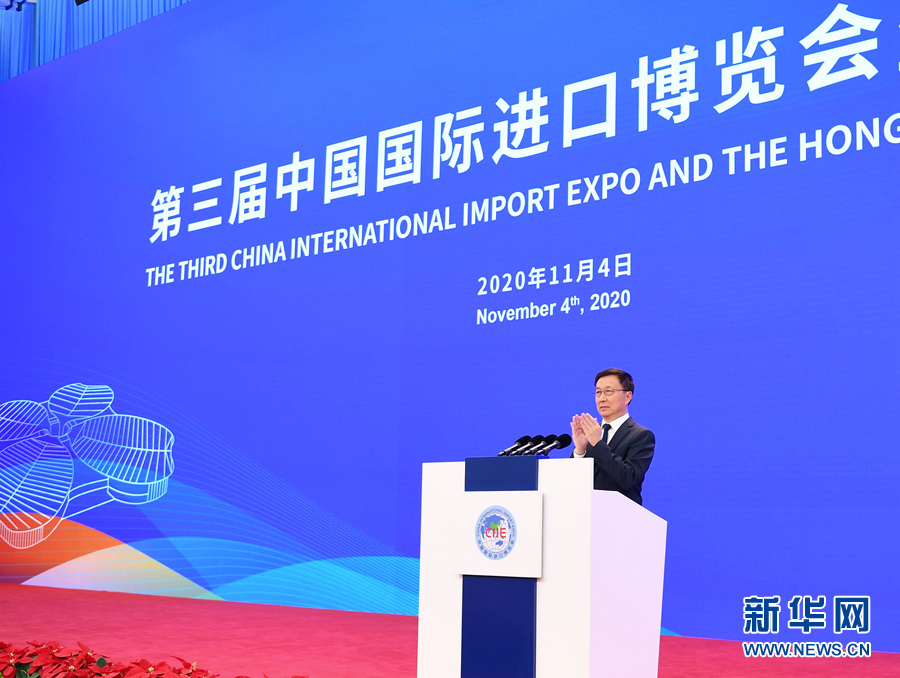 11月4日,中共中央政治局常委、國務(wù)院副總理韓正在上海出席第三屆中國國際進(jìn)口博覽會(huì)開幕式。這是韓正宣布第三屆中國國際進(jìn)口博覽會(huì)開幕。 新華社記者 燕雁 攝