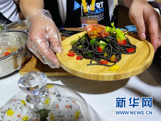 剛剛制作完成的墨魚面。 新華網(wǎng) 佘靈 攝
