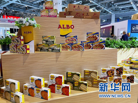 展臺陳列著多種口味的罐頭。 新華網(wǎng) 佘靈 攝