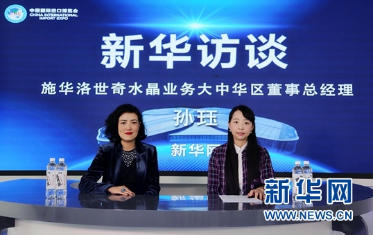 施華洛世奇水晶業(yè)務(wù)大中華區(qū)董事總經(jīng)理孫玨(左)接受新華網(wǎng)“外企共話新格局”系列訪談專訪。新華網(wǎng) 發(fā)