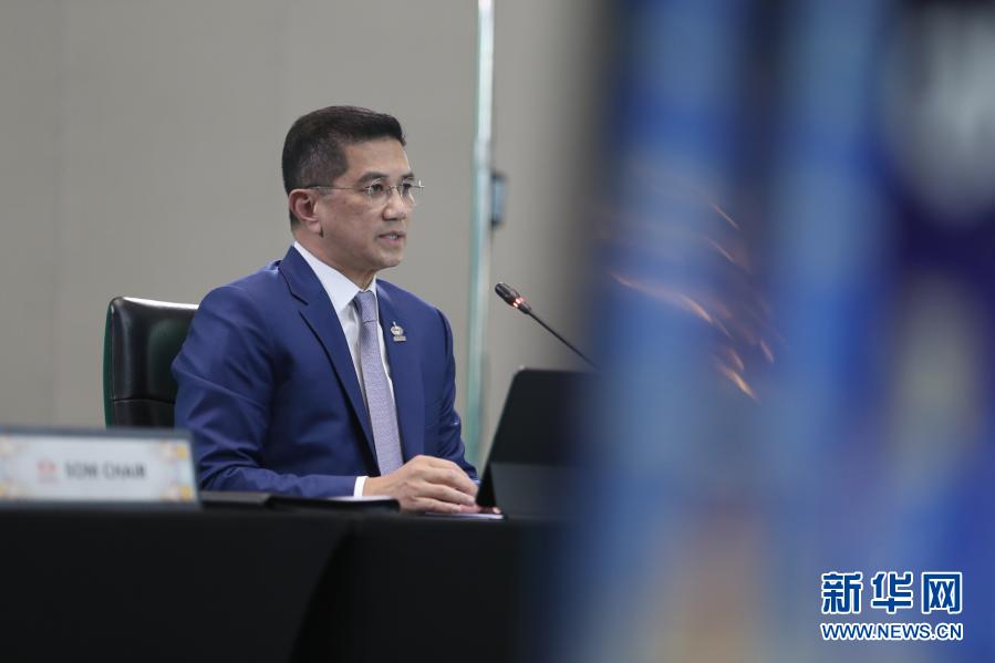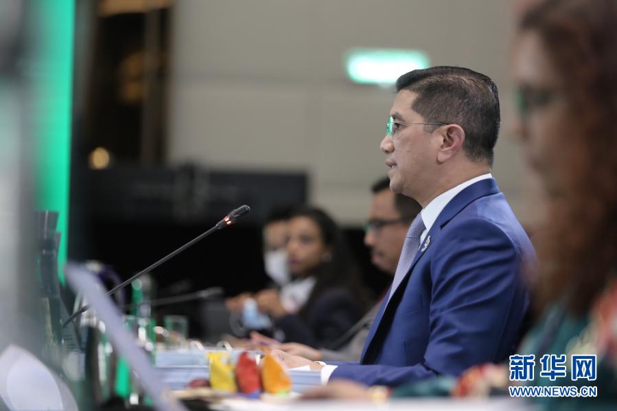 11月16日,在馬來西亞吉隆坡,馬來西亞國際貿易和工業(yè)部部長阿茲明·阿里在亞太經濟合作組織部長會議上講話。新華社發(fā)(亞太經合組織供圖)