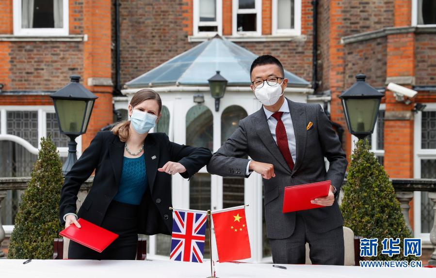 10月16日,在英國(guó)倫敦,代表中國(guó)國(guó)家文物局的中國(guó)駐英國(guó)大使館文化處一秘于果(右)和代表英國(guó)大都會(huì)警察局的探員蘇菲·海斯簽署文物接收確認(rèn)書(shū)。新華社記者 韓巖 攝
