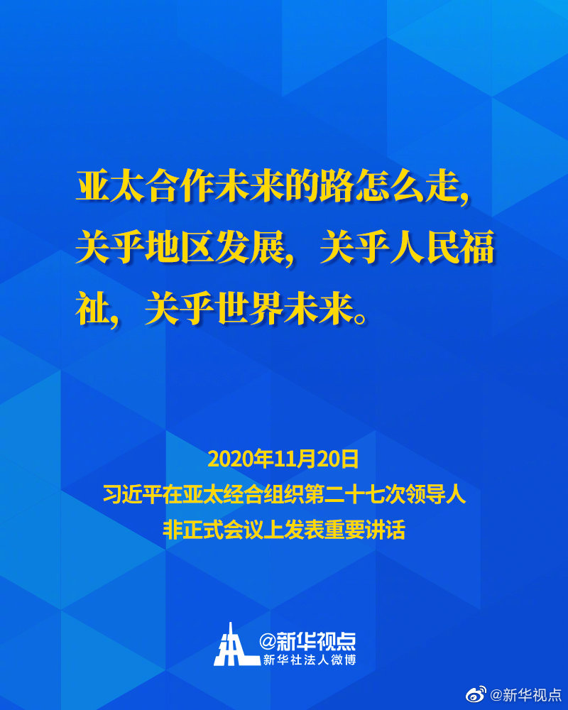 11月20日,國(guó)家主席習(xí)近平在亞太經(jīng)合組織第二十七次領(lǐng)導(dǎo)人非正式會(huì)議上發(fā)表重要講話。一起來(lái)看習(xí)主席的APEC金句↓↓