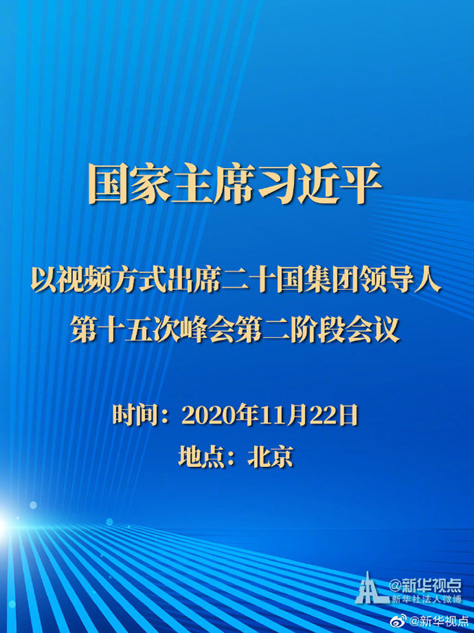 國(guó)家主席習(xí)近平11月22日晚在北京以視頻方式出席二十國(guó)集團(tuán)領(lǐng)導(dǎo)人第十五次峰會(huì)第二階段會(huì)議。 ???
