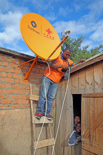 “萬村通”項目是2015年中非合作論壇約翰內(nèi)斯堡峰會提出的中非人文領(lǐng)域合作舉措之一,旨在為非洲國家的一萬個村莊接入衛(wèi)星數(shù)字電視信號。這一項目由中國的四達(dá)時代集團(tuán)承建。