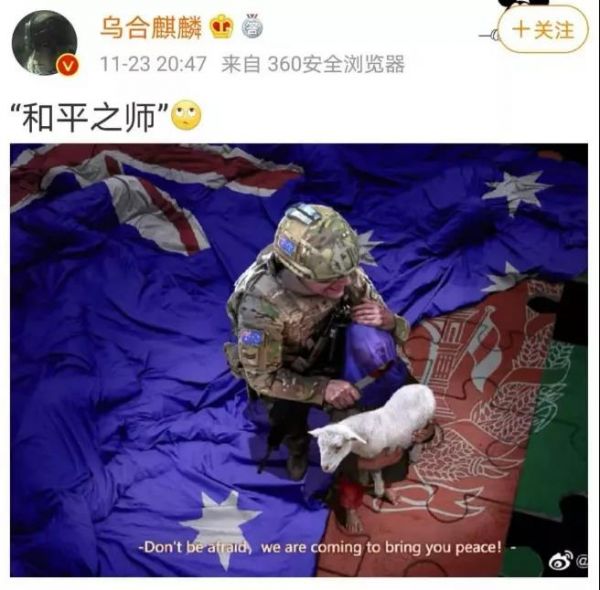 此事動靜太大,畫作的原作者都出來回應(yīng)了。11月30日,該畫的作者@烏合麒麟 就此事接受媒體采訪時說:“莫里森應(yīng)該好好面對現(xiàn)實,把注意力和精力都放在本國事務(wù)上,比如說好好地管理一下自己國家駐外軍隊的紀(jì)律,以免再發(fā)生類似的這種國際慘劇,也算是為人類做出貢獻(xiàn)了。(莫里森應(yīng)該)少把精力放在去譴責(zé)、以及對別國一個普普通通的畫手基于事實的創(chuàng)作上去施加壓力。”