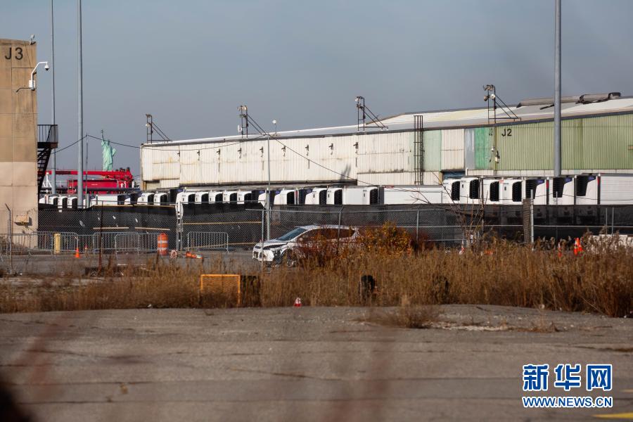 12月3日,在美國紐約,存放新冠病亡者尸體的冷藏車停放在一處臨時(shí)停尸場內(nèi)。新華社發(fā)(郭克 攝)