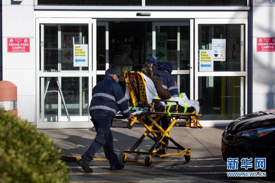 12月3日,在美國紐約,工作人員運(yùn)送一名患者。新華社發(fā)(郭克 攝)