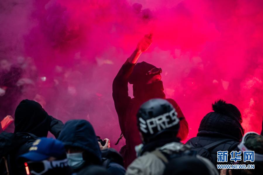 12月5日,人們?cè)诜▏?guó)巴黎參加游行示威活動(dòng)。新華社發(fā)(奧雷利安·莫里薩爾攝)
