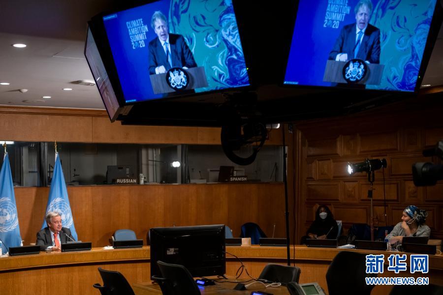 12月12日,在位于紐約的聯(lián)合國總部,聯(lián)合國秘書長古特雷斯(左)出席氣候雄心峰會。聯(lián)合國秘書長古特雷斯12日在氣候雄心峰會上致辭,呼吁全球進入“氣候緊急狀態(tài)”。新華社發(fā)(聯(lián)合國供圖)