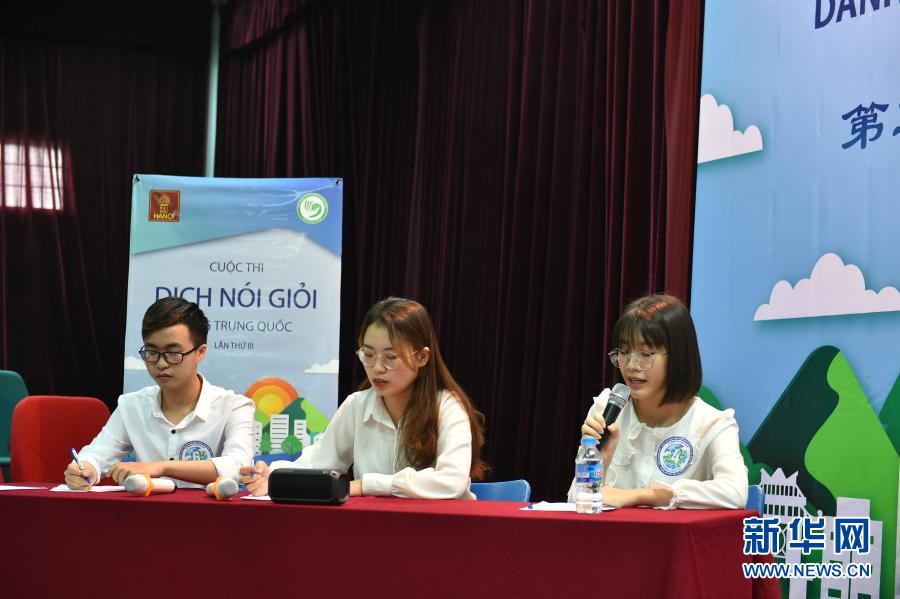 12月13日,參賽選手在越南首都河內(nèi)舉行的第三屆越南大學生漢越口譯大賽決賽現(xiàn)場答題。新華社記者 蔣聲雄 攝