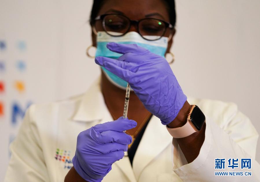 12月14日,在美國紐約長島猶太醫(yī)療中心,一名醫(yī)護人員為新冠疫苗接種作準(zhǔn)備。新華社記者王迎攝