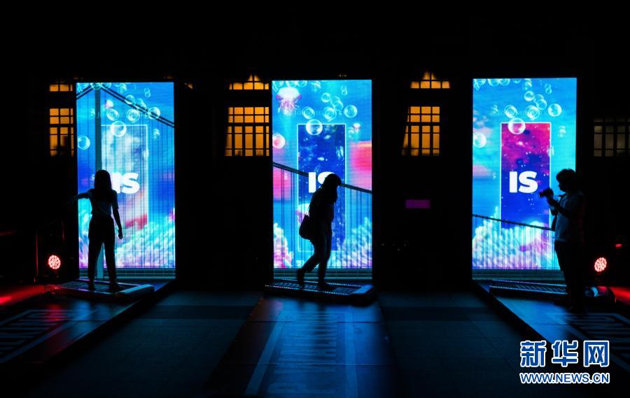 12月15日,游客在泰國曼谷參觀“覺醒曼谷”主題燈光藝術(shù)節(jié)上的一件互動(dòng)燈光藝術(shù)作品。