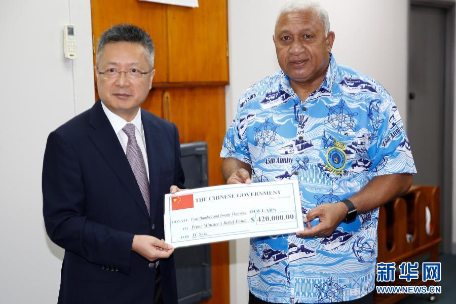當(dāng)天在斐濟(jì)總理辦公室舉行的儀式上,中國(guó)駐斐濟(jì)大使錢(qián)波代表中國(guó)政府向斐濟(jì)總理姆拜尼馬拉馬轉(zhuǎn)交了這筆援助款。