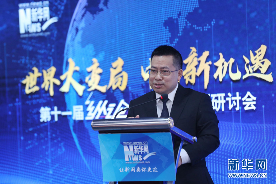 1月8日,新華網(wǎng)第十一屆“縱論天下”國(guó)際問題研討會(huì)在北京成功舉行。圖為中國(guó)國(guó)際問題研究院常務(wù)副院長(zhǎng)、習(xí)近平外交思想研究中心副主任阮宗澤在進(jìn)行主旨演講。新華網(wǎng) 郭小天 攝