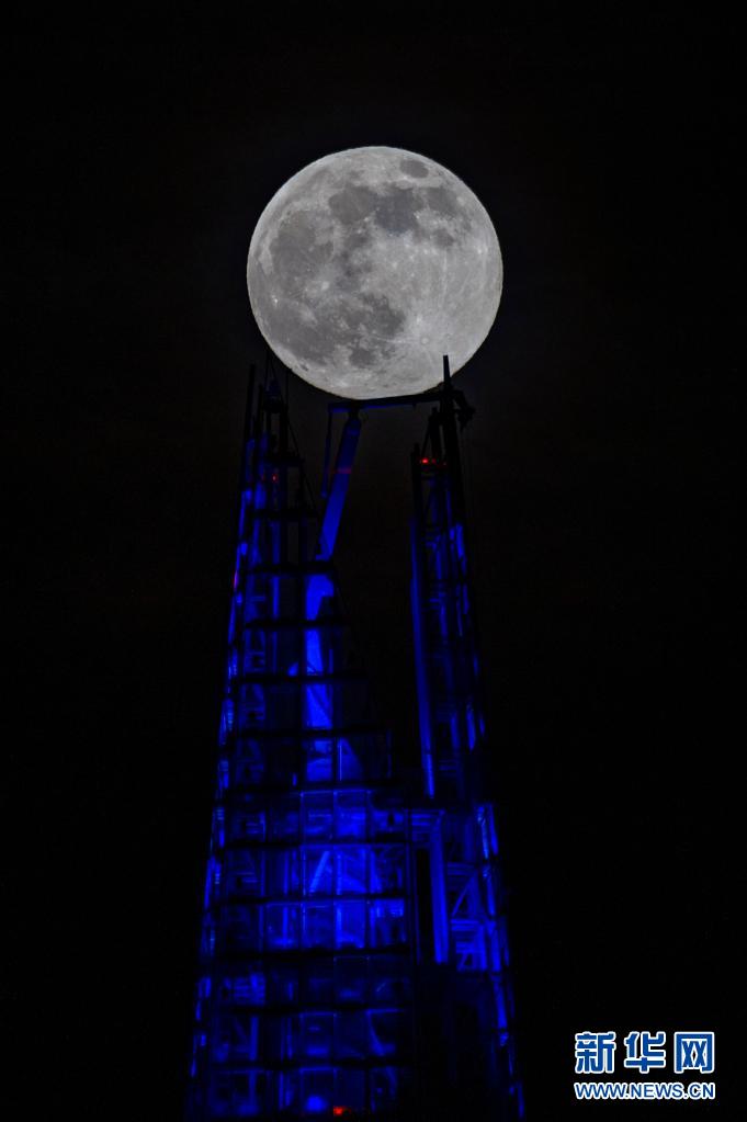 這是4月26日在英國倫敦拍攝的“碎片大廈”旁的“超級(jí)月亮”。