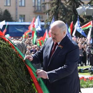 5月9日,白俄羅斯總統(tǒng)盧卡申科在明斯克向勝利紀(jì)念碑獻(xiàn)花。