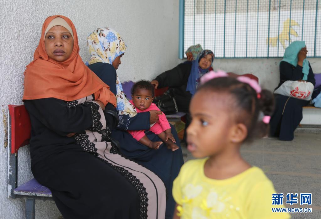 5月17日,受巴以沖突影響而逃離家園的巴勒斯坦婦女和兒童在加沙地帶拉法的一所學(xué)校臨時棲身。