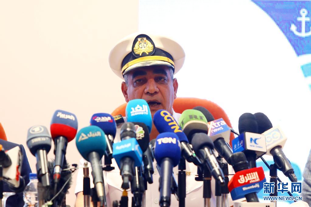 5月30日,在埃及東北部城市伊斯梅利亞,蘇伊士運河管理局調(diào)查組負責人賽義德·舒愛沙在“長賜”號貨輪擱淺事故調(diào)查結果新聞發(fā)布會上講話。