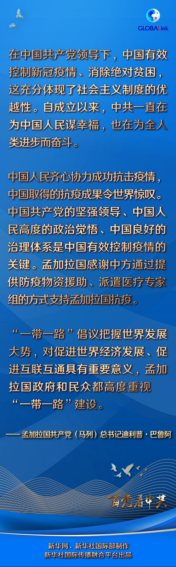 巴魯阿高度評(píng)價(jià)中國(guó)抗擊新冠疫情的顯著成效。他說,中國(guó)人民齊心協(xié)力成功抗擊疫情,中國(guó)取得的抗疫成果令世界驚嘆。中國(guó)共產(chǎn)黨的堅(jiān)強(qiáng)領(lǐng)導(dǎo)、中國(guó)人民高度的政治覺悟、中國(guó)良好的治理體系是中國(guó)有效控制疫情的關(guān)鍵。孟加拉國(guó)感謝中方通過提供防疫物資援助、派遣醫(yī)療專家組的方式支持孟加拉國(guó)抗疫。