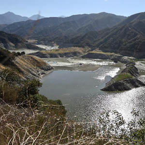 這是6月24日拍攝的美國(guó)加利福尼亞州洛杉磯縣阿祖薩市附近的圣加布里埃爾水庫(kù)。