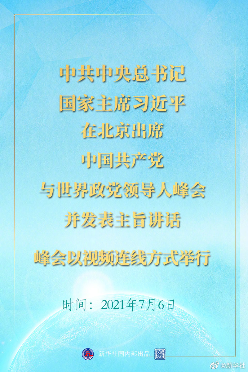 7月6日晚,中共中央總書記、國家主席習近平在北京出席中國共產(chǎn)黨與世界政黨領導人峰會并發(fā)表主旨講話。峰會以視頻連線方式舉行。