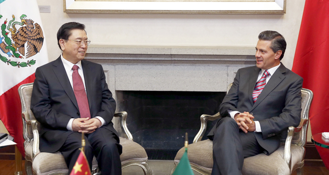 應(yīng)墨西哥參議長巴爾沃薩和眾議長奧雷奧萊斯的邀請,全國人大常委會(huì)委員長張德江25日至26日對(duì)墨西哥進(jìn)行正式友好訪問,在墨西哥城會(huì)見墨西哥總統(tǒng)培尼亞,與巴爾沃薩和奧雷奧萊斯分別舉行會(huì)談。[詳細(xì)]
